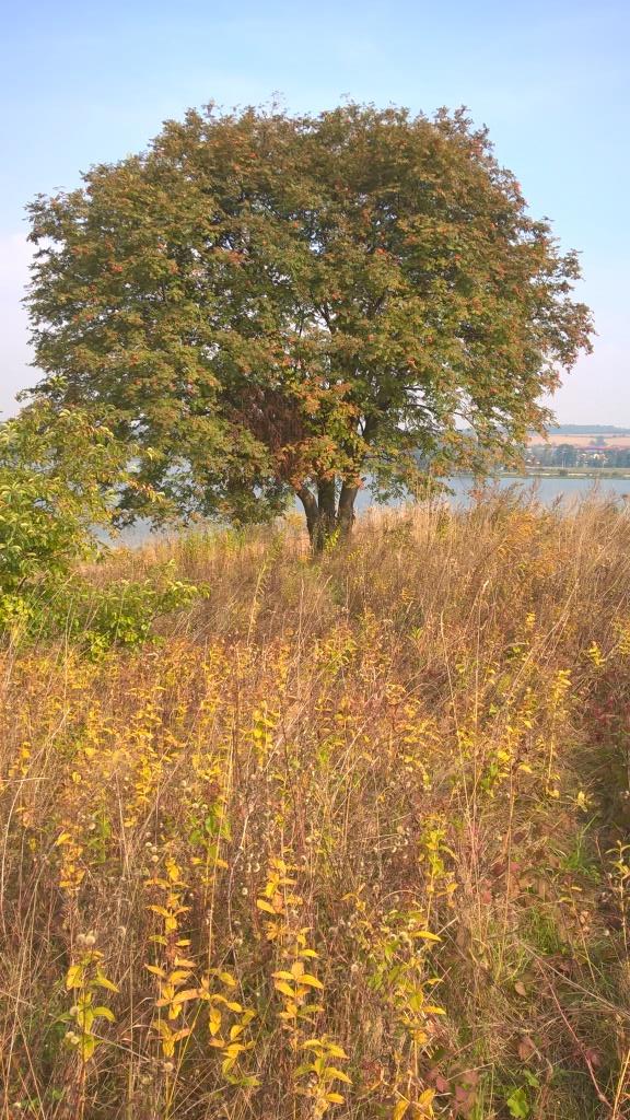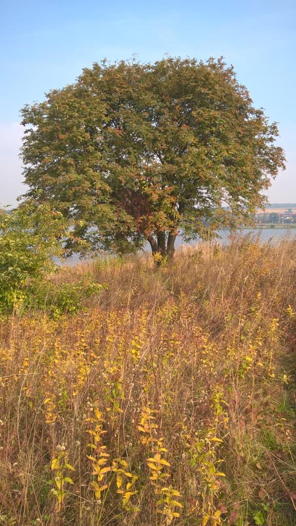 Jarzębina pod którą modlimy się nad stawami w Rząsce, naprzeciw Kopca Bogini Śreczy, Pani Złotowłosej, Pani Pośredniczącej (Średczy, Śródy, Sporzychy- Złotej Baby), żony Spora-Usłada (Złotowąsa) – Pana Dostatku i Sporzenia