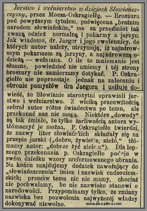 [9] http://www.jura-pilica.com/?konstanty-moes-oskargiello,333, J. Brodacki, Trawożerne dziwaki czyli jak jarosze uzdrawiali naród polski, Mówią Wieki. Magazyn Historyczny 2012, nr 11/12, s. 29-30.