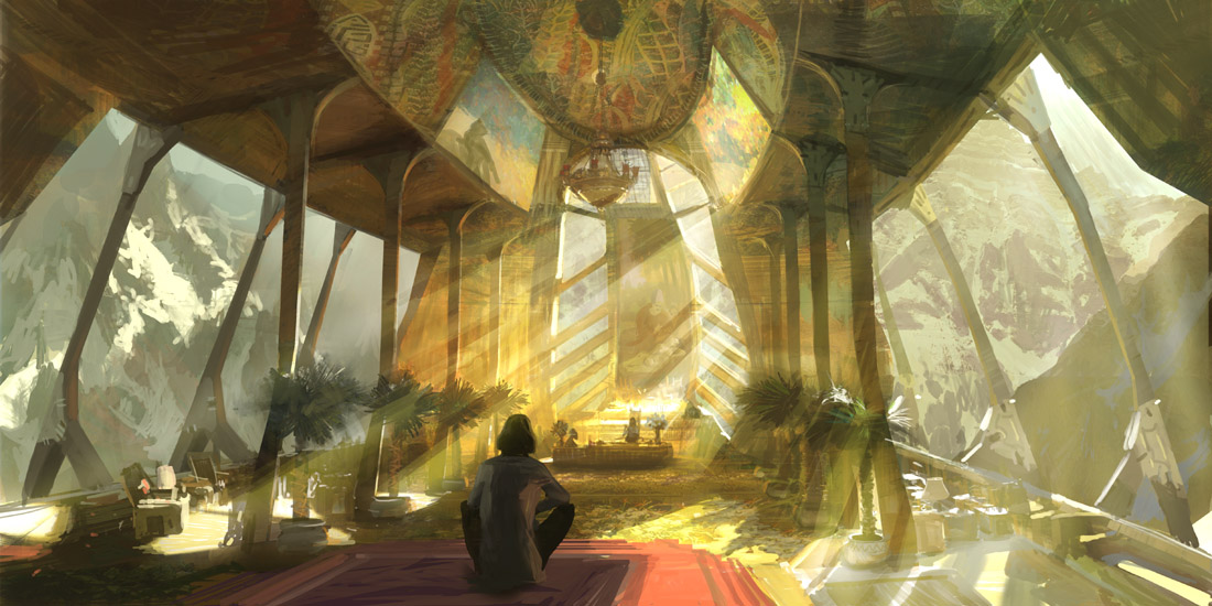 Świątynia, widok z Przełęczy Osidło – Sitdech (Osiadłości Tchu-Duszy)