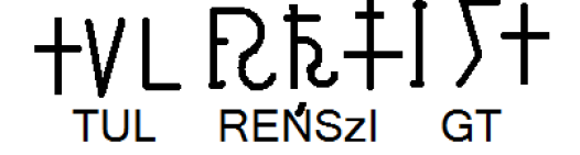 Niestety, nie mogę zmusić moich oczu i umysłu by potwierdziły tą sugestię. Na artefakcie mamy napis runami, który czytam TUL REŃSzI GT, a na drugim literami łacińskimi napis TULEBERHtT.