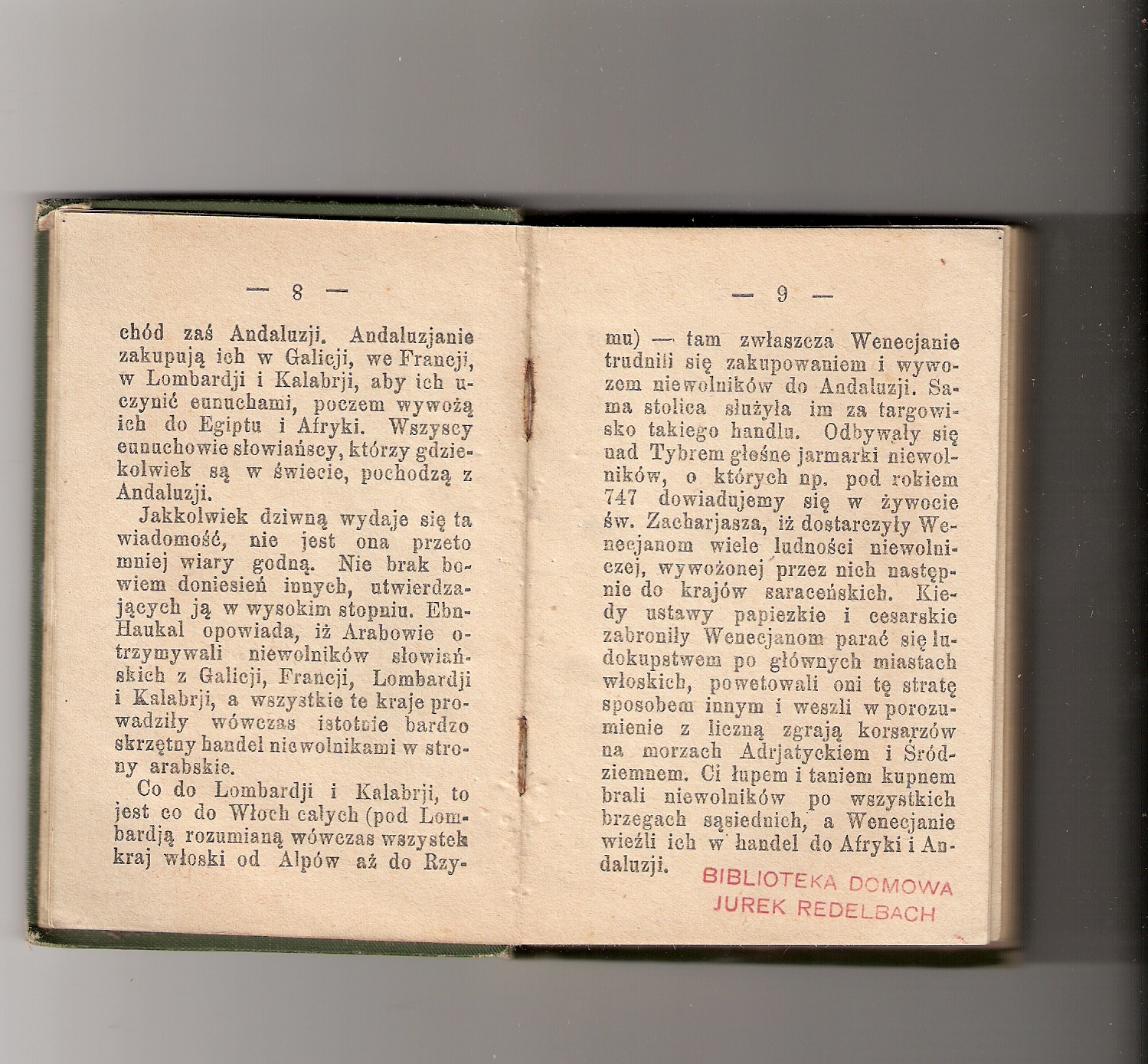 „Na wschodzie zakupują słowiańskich niewolników w Chorezmie (Korrasanie) a na zachodzie w Andaluzji, Galicji, Francji, Lombardji i Kalabrji” – a więc na obszarze całej praktycznie zachodniej Europy, byłego cesarstwa Zachodnio-Rzymskiego. Widać tutaj też proceder łupienia słowiańskich wybrzeży Chorwacji, Bośni, Serbii, Macedonii i Czarnogóry. Skala zjawiska jest dla samego autora porażająca, aż niewiarygodna. Tak właśnie odbywała się chrystianizacja Łużyc, Czech, Moraw, Uhorza-Węgier, Serbii, Chorwacji, Wołoszy/Rumunii, Bułgarii, Słowiańskiej Grecji i Peloponezu oraz Małej Azji i Czarnomorza . Były to masowe wojenne grabieże ziem zasiedlonych przez Słowian. Polska/Lechia/Gebalim, wtedy jeszcze temu handlowi nie podlegała, ale wschodnia Ruś tak.