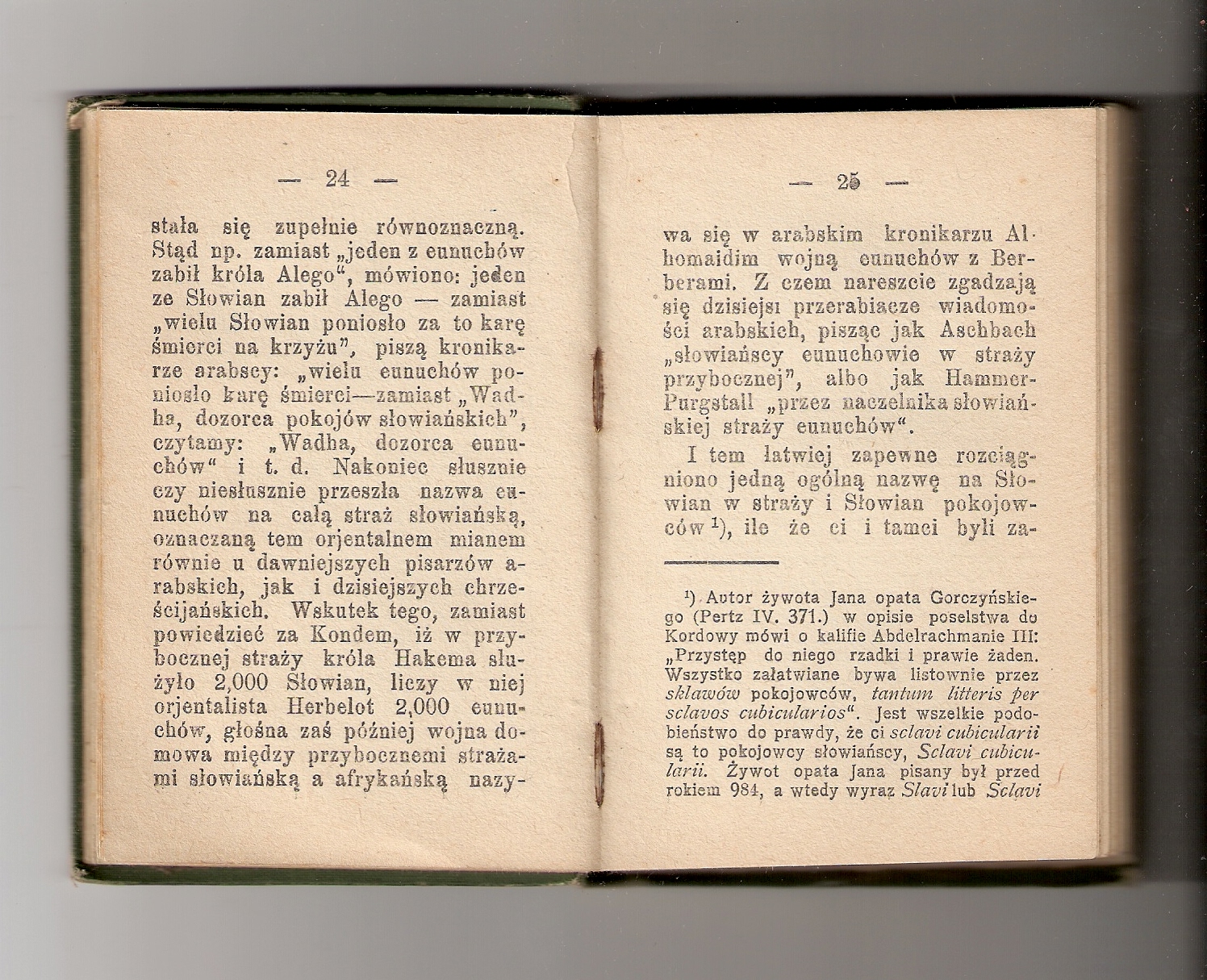 Ważny bardzo jest ten przypis nr 1, który pokazuje jak wysoką funkcję spełniali owi „Pokojowcy Słowiańscy”. Jak stwierdza opis poselstwa do Kordowy nic nie można było załatwić osobiście z kalifem, wszystko załatwiało się z Pokojowcami i to na piśmie. Byli to zatem wykształceni ludzie biegle posługujący się pismem arabskim, językiem arabskim, znający obyczaje i prawa oraz na tyle zaufani, że kalif mógł im powierzyć takie funkcje.