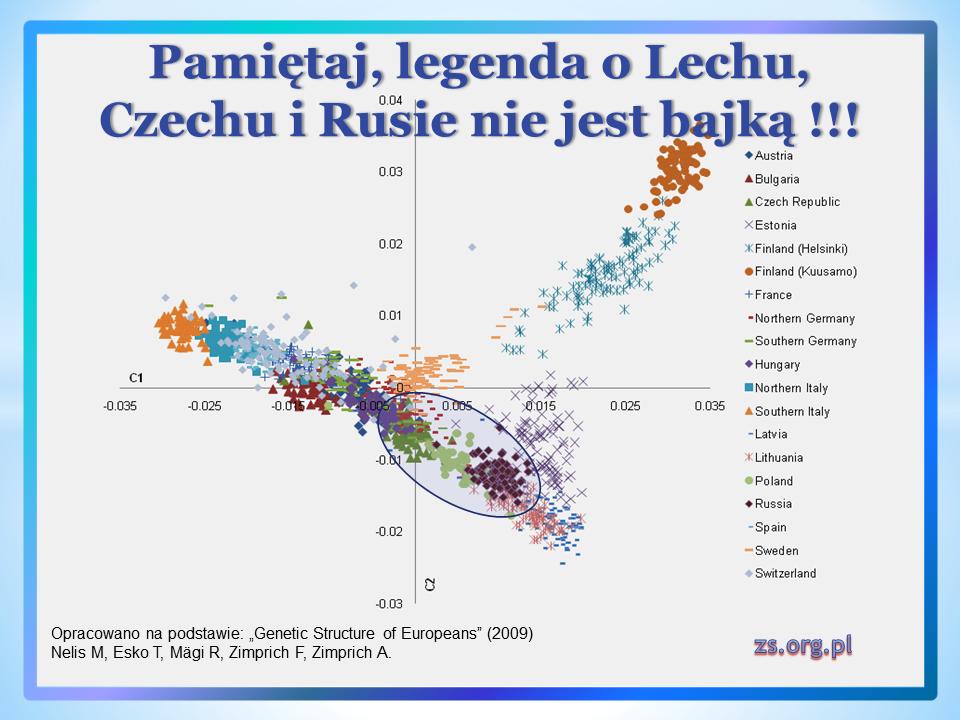 To ciekawa mapa i dobrze zrobiona z wyjątkiem jednego – znów Rosjanie podkręcili swoją pozycję i zasmarowali zielone kółka które powinny pokryć Rosję – bo brak tutaj Ukrainy i Białorusi, które są przeniknięte językiem polskim. Wtedy mielibyśmy jako łącznik i źródło język polski – i taka jest prawda. Brak Słowian Bałkańskich jest skandaliczny – a wynika z tego, że znów okazałoby się, że źródłem jest język polski i to by już położyło całkiem tę mapkę ku chwale Wielkiej Rosji. Tylko po wprowadzeniu takich poprawek ta mapa zgadzać się będzie z wynikami badań genetycznych DNA hg Y R1a.