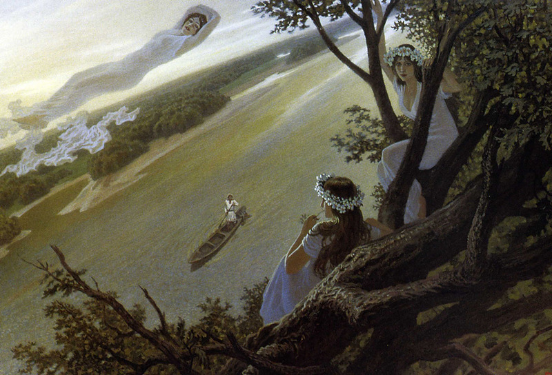 А навьи – это злые русалки, которые утаскивают детей и девушек, забредших на «русальной» неделе в лес. Защекотав или «затанцевав» пленников до смерти, русалки-навьи пополняют ими свои ряды. И потому родителям категорически запрещалось отпускать в это время детей одних в лес и в поле. Русалками и русалами, по преданиям, становятся те, кто умер, не став взрослым, некрещеные дети или же молодые девушки, утопившиеся от неразделённой любви.