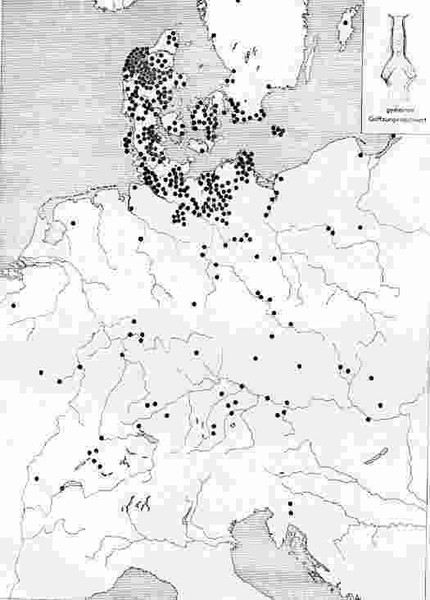 Otóż rozprzestrzenienie znalezisk tej broni w Europie jest bardzo charakterystyczne i wskazuje na ich koncentrację w rejonie ujścia Łaby i na półwyspie Jutlandzkim