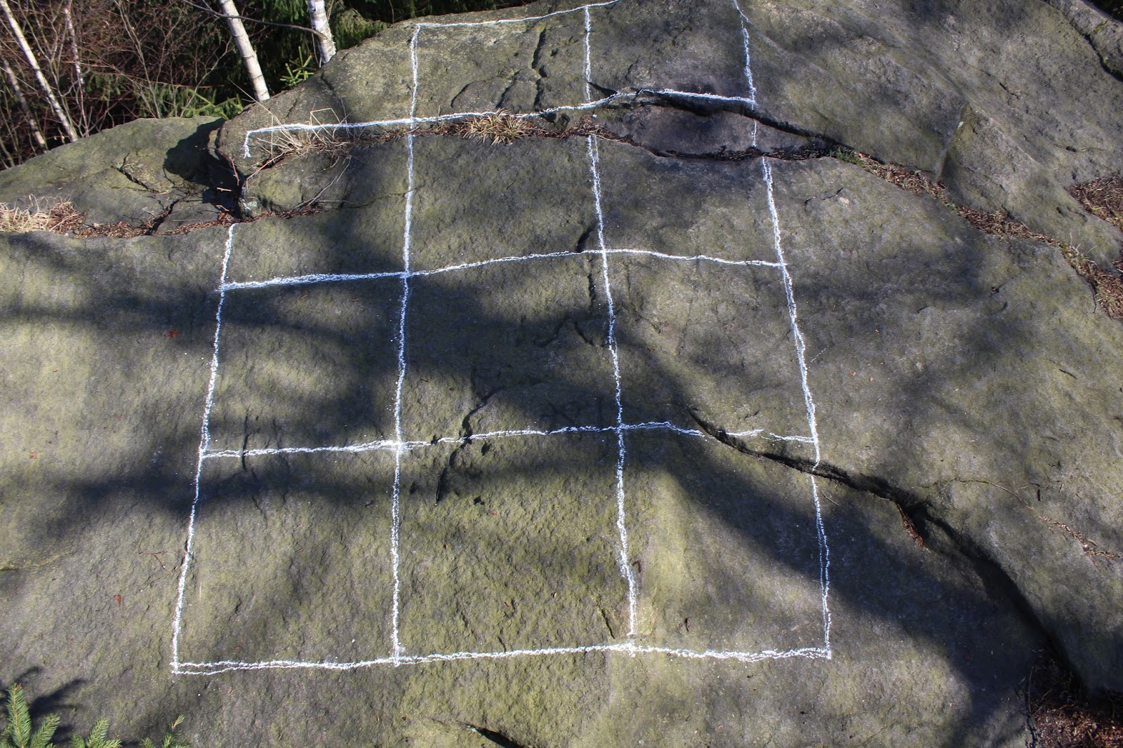 Nieco prostszym rozwiązaniem jest odtworzenie takiego układu, ale w oparciu o zmodyfikowany tzw. asteryzm nieba zimowego. Właściwy asteryzm tworzy układ trzech gwiazd: Betalgaza w układzie Oriona , Syriusz w układzie Wielkiego Psa i Procjon w układzie Małego Psa. Jednak tak zbudowany kielich kosmogonicznego Graala byłby asymetryczny względem tzw. Pasa Oriona. Dlatego jego wierzchołek , zgodnie z tym co przedstawia ryt ze skały należały zahaczyć o gwiazdę Alnitak, pierwszą od lewej w Pasie Oriona. Tak stworzony układ wyglądałby następująco: