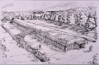 Nie tylko wydobywanie ziemi na nasypy grobowe wymagało wysiłku fizycznego i logistycznego. Do zbudowania setek metrów palisad potrzebne były tysiące specjalnie wybranych, ściętych i ociosanych pni drzew. Obróbka i transport drewna, zgromadzenie kamieni, kopanie rowów, a w końcu sama budowa wymagały doskonałej organizacji pracy, której mogła sprostać tylko liczna, zdyscyplinowana i dobrze kierowana społeczność. Przecież nie było możliwe zatrudnienie przy budowie grobowca całej okolicznej ludności. Ktoś musiał w tym czasie uprawić ziemie , doglądać zwierząt, polować, gotować strawę i dbać o wioskę….”
