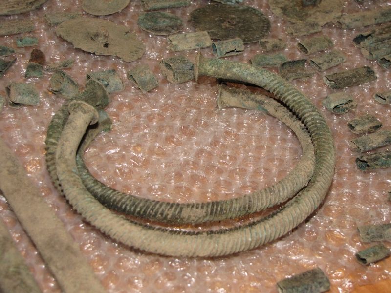 Zespół artefaktów, jak się wstępnie ocenia pochodzących z IV-V okresu epoki brązu przypadającego na lata 1100-700 p.n.e., liczy kilkadziesiąt przedmiotów, m.in. związanych z wierzeniami i rytuałami religijnymi społeczności, która je wytworzyła.