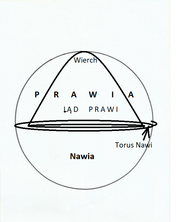 Obraz z Torusem Jawijnym pokazuje jednocześnie zakotwiczenie Jawi – „od dołu” w Nawi, a „od góry” w Prawi – mowa oczywiście o modelu poglądowym, o zakotwiczeniu pozornym, majicznym, gdyż RzeczyIstność widziana z naszej perspektywy – Świata prze-Jawionego – przenika Rzeczywistość, a choć RzeczyIstność „fizycznie” nie dotyka Rzeczywistości to wpływa na nią BEZPOŚREDNIO swoimi Siłami, Powiązaniami i poprzez płynące z tych Sił i Powiązań Prawa Przyrodzone.