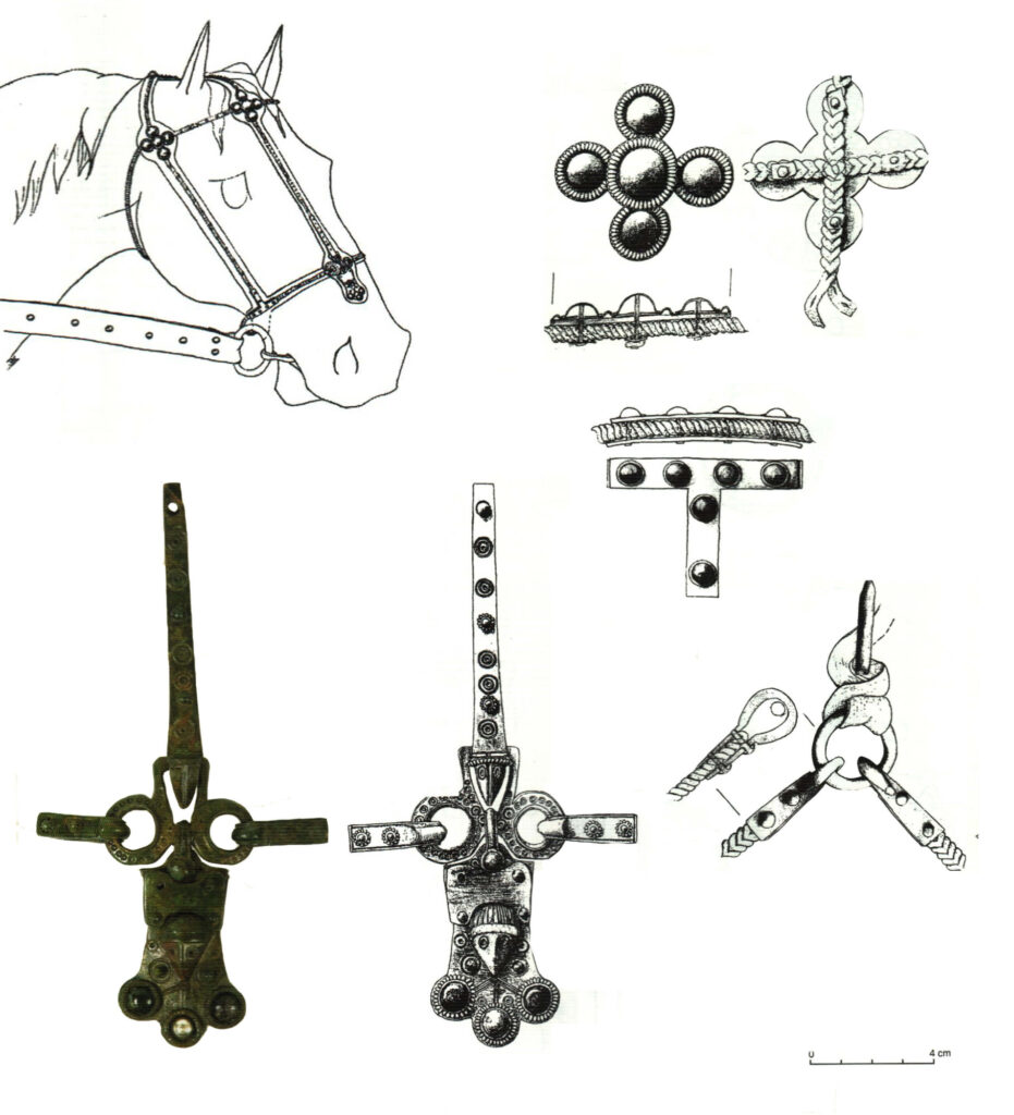 Elementy bogato zdobionego rzędu końskiego z elitarnego pochówku ze stanowiska Szwajcaria