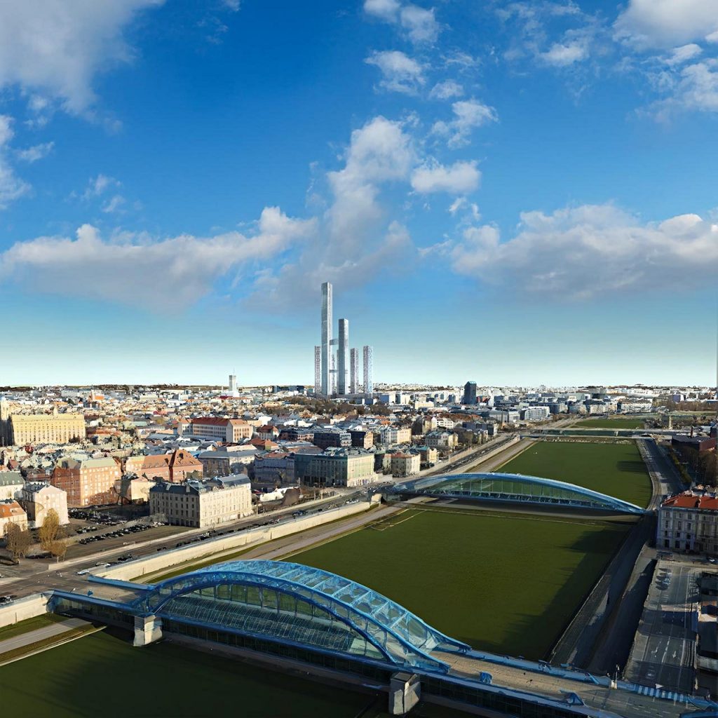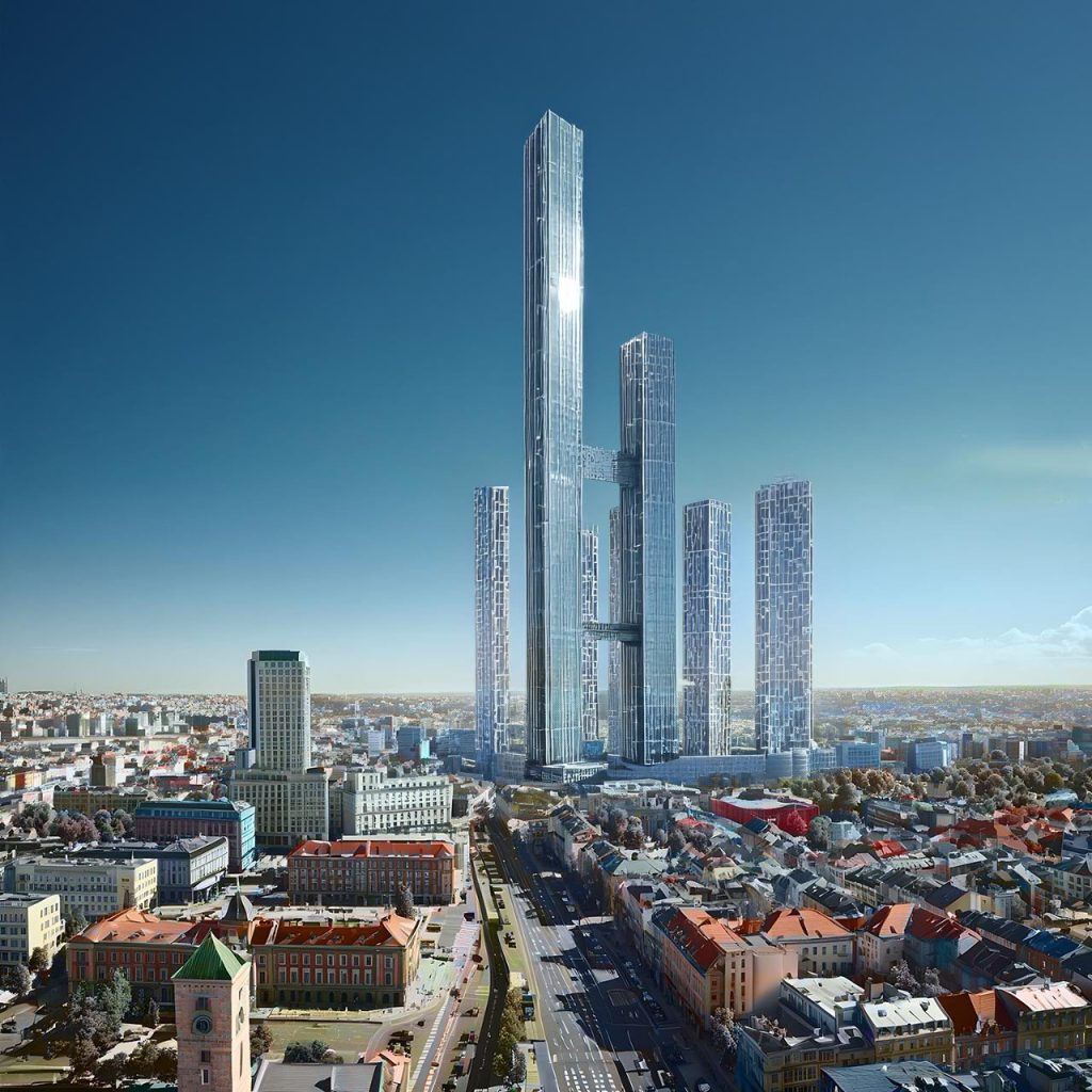 Projekt stworzony z wykorzystaniem sztucznej inteligencji zakłada budowę dominującego budynku z dwoma wieżami o wysokości 470 i 300 metrów oraz pięciu wieżowców 200-metrowych.