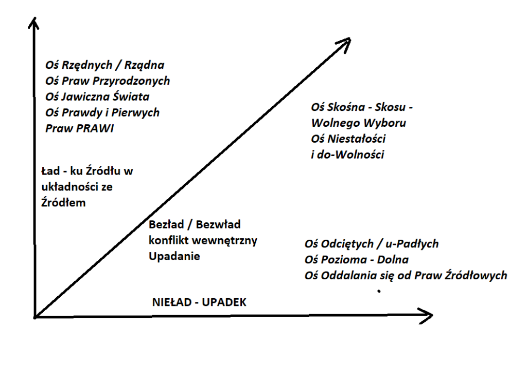Od chwili odejścia od Praw Rzędnych (Prawa Przyrodzonego) korekty ku Rzędności w Systemie organizacji życia na Ziemi przestały odbywać się niejako „automatycznie” – Na człowieka spadł obowiązek pilnowania fluktuacji Osi S-KOŚnej tak, aby zbliżała się ona do Osi RZĘDNEJ (PRAWO-Rządności), a nie opadała ku Osi Odcięcia od Źródła. Posuwanie się po Osi Czasu na Osi Odciętych oznacza brak jakiegokolwiek postępu zbliżającego Ludzkość do Źródłowości, oznacza jedynie horyzontalny rozwój cywilizacji, czyli stratę czasu przy pozorowanym rozwoju.