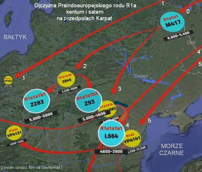 Do najbardziej przełomowych przemian doszło jednak w środkowych i górnych rejonach dorzeczy dwóch przykarpackich rzek Dniestr i Prut i to już około 3500 lat przed Chrystusem. Po wykryciu w genetycznym badaniu (Sirak et al. 2019 i 2020) w szczątkach człowieka (I11954 Glav-14), pochowanego w latach około 3500-3000 lat przed Chr. w rumuńskiej Mołdawii nad prawym dopływem Prutu, Jijia (czyt. Żiżija), ojcowskiej haplogrupy R1a z czołową mutacją Z93*, już teraz wiadomo, że może wnet po 3500 r. (umownie około 3000 przed Chr.) na przedpolach Karpat wśród napływowej zapewne z dorzecza Donu ludzi kultury jamowej i lokalnej Cucuteni-trypolskiej żyła rodzina, która stała się symbolem rodziców-Praindoeuropejczyków. Ów bowiem mężczyzna z mutacją Z93 stał się ojcem azjatyckiej linii rodu gałęzi praindoeuropejsiiego rodu, słynącej z indo-irańskich Ariów. Jego bliski brat genetyczny z mutacją Z283 stał się zaś ojcem głównie środkowo i wschodnioeuropejskiej rodziny Indoeuroopejczyków, głównie zwanych Bałtosłowianami. W ten sposób ich bezpośredni ojciec, R1a-Z645, może być uważany za ojca wszystkich językowych i biologicznych zarazem Praindoeuropejczyków, a miejsce pochówku człowieka Z93, w dzisiejszej miejscowości Glavaneszti Iaszi (w zapisie: Glăvăneşti Iasi; Iasi czyt. Jaszi, to nazwa powiatu), może być uważane za gniazdo Praindoeuropejczyków, bowiem bardziej rozwinięty ród PIE ojczyznę skąd ekspandował na Europę, wspólną ojczyznę miał raczej w Polsce). Na poniższej mapie widzimy szlak migracji z północnej Mołdawii ku Polsce znaczony pochówkami: z pochówków kultury jamowej (kolor zielony) przez niezidentyfikowane (kolor biały) do pochówków kultury sznurowej w Polsce i jej sąsiedztwie, górnym Podniestrzu i Wolyniu (kolor czerwony).”