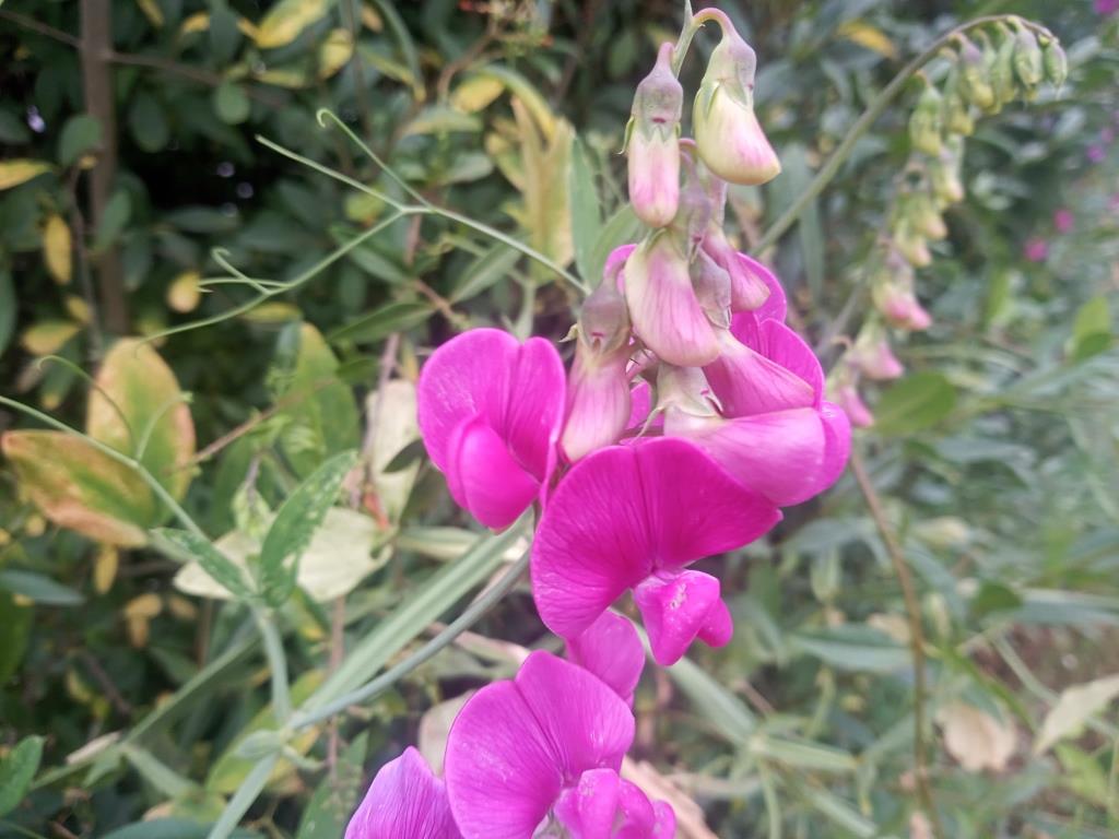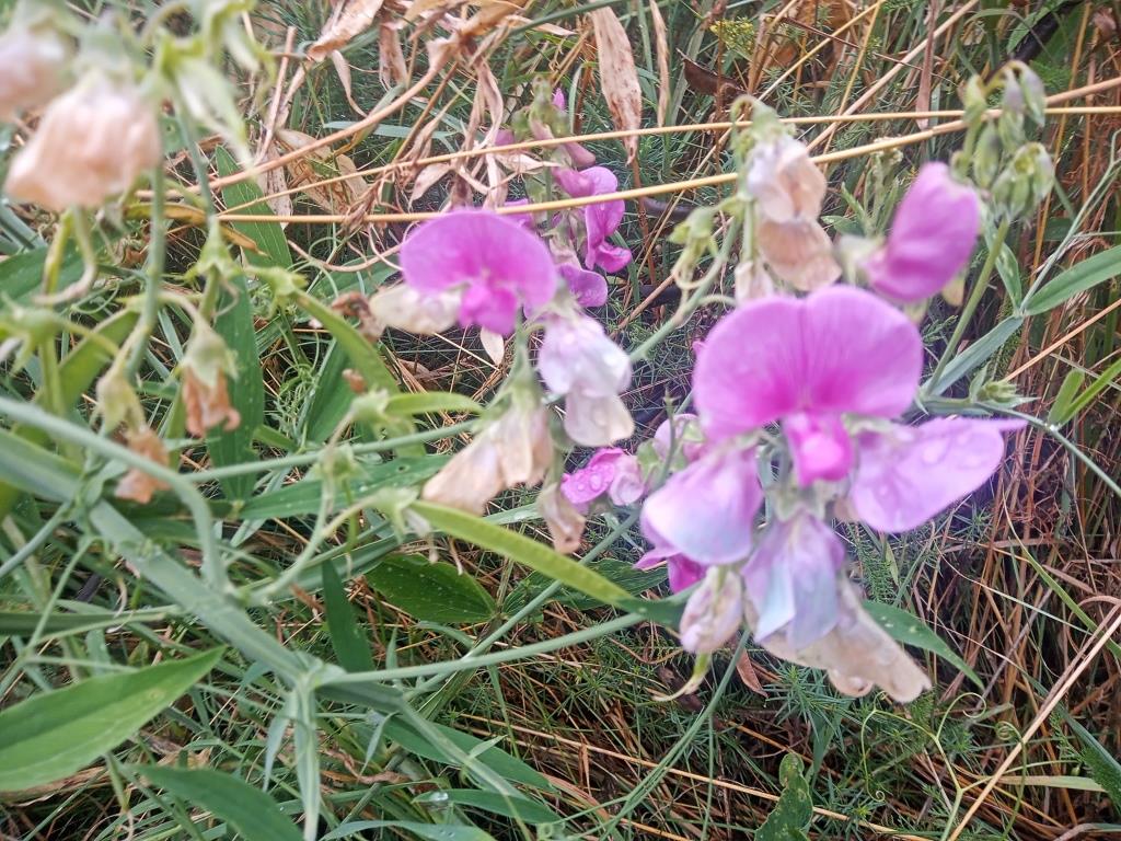 Groszek różowy – To wszystko już obecnie rośliny dzikie, choć najprawdopodobniej zdziczałe jako zawleczone tutaj z niedalekich ogrodów, albo wyrosłe z nasion roślin zeschłych, które wycinano w ogrodach i wyrzucano na skraj lasu. Nie tylko zdziczały ale rozrosły się – Róże tworzą zwarty żywopłot nie do przejścia.