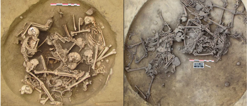 Autorzy nowych badań przeanalizowali szczątki ludzkie pochodzące z dwóch masowych grobów w Achenheim i Bergheim w Alzacji. W grobach tych złożono w sumie 14 osób, których szkielety noszą ślady urazów oraz celowo zadawanych dodatkowych obrażeń (czyli obrażeń wykraczających poza te, które są konieczne do zabicia). Wraz z nimi do jam grobowych trafiły dodatkowe fragmenty lewych ramion innych osób. Pochówki pochodzą z regionu, w którym doszło do wspomnianej inwazji, a ich datowanie wskazuje na lata 4300–4150 p.n.e, zatem na czas w którym odbyła się wymiana kulturowa. Badania izotopowe posłużyły do określenia pochodzenia osób pochowanych w masowych grobach i porównania ich okolicznymi standardowymi pochówkami.