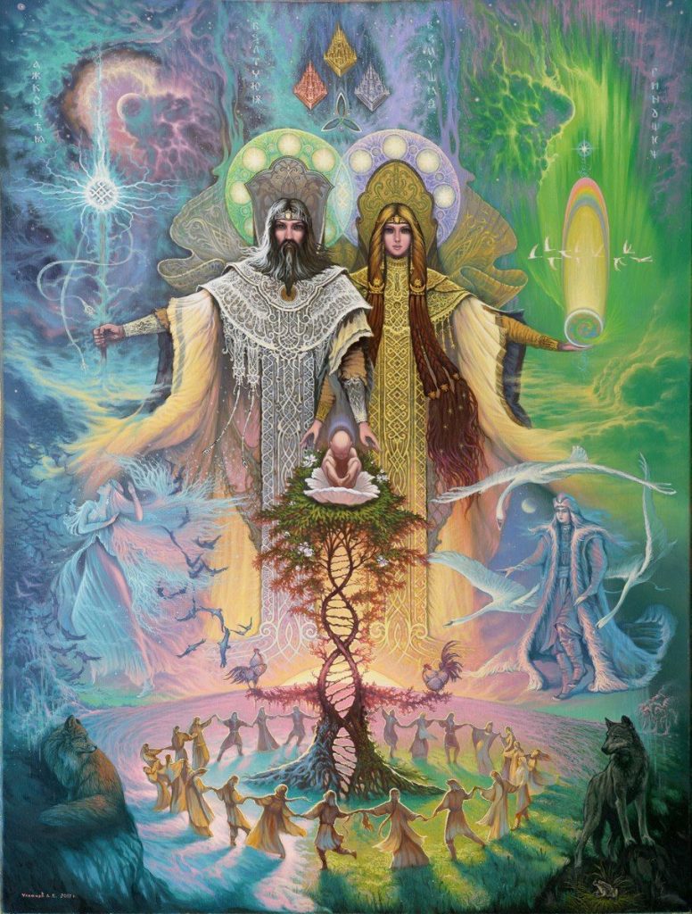 Jeszcze kilka lat temu kiedy przygotowywałem dla Nas wszystkich na Szczodre Gody i Nowy Gwiazdowy Rok życzenia i starałem się wyszukać w Sieci postacie Słowiańskich Bogów wyposażone we właściwe atrybuty lub występujące w towarzystwie swych zwierzęcych i roślinnych sekirów (będących też właściwymi dla nich formami ziemskich wcieleń) miałem olbrzymie trudności w znalezieniu czegokolwiek. Teraz mamy tak wielki wysyp obrazów, że wprost trudno dokonać wyboru. Tak zmieniła się w krótkim czasie sytuacja ilustracyjna w Internecie – na korzyść Słowiańskiej Wiarowiedy (Wiary Przyrodzonej / Wiary Przyrody) i Rodzimowierstwa Słowiańskiego.
