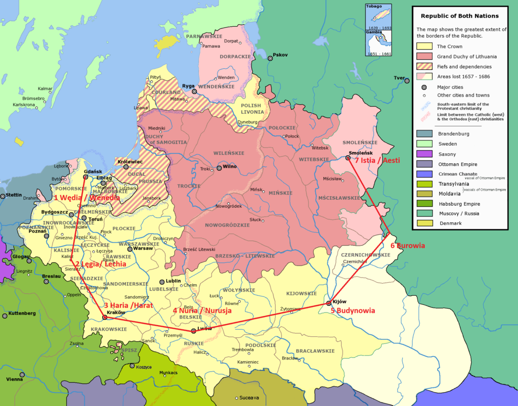 - Widły Wisły i Narwi (Mazowsze): Serce Systemu. Centralny punkt łączący wszystkie regiony w jedno Grono Grodu.