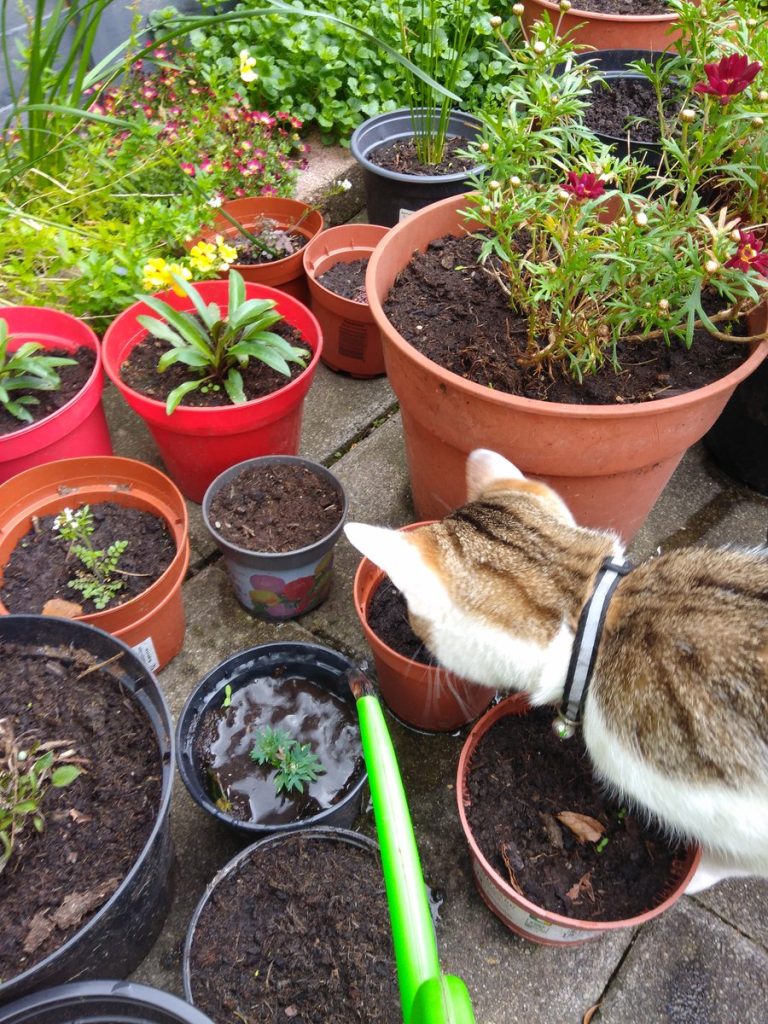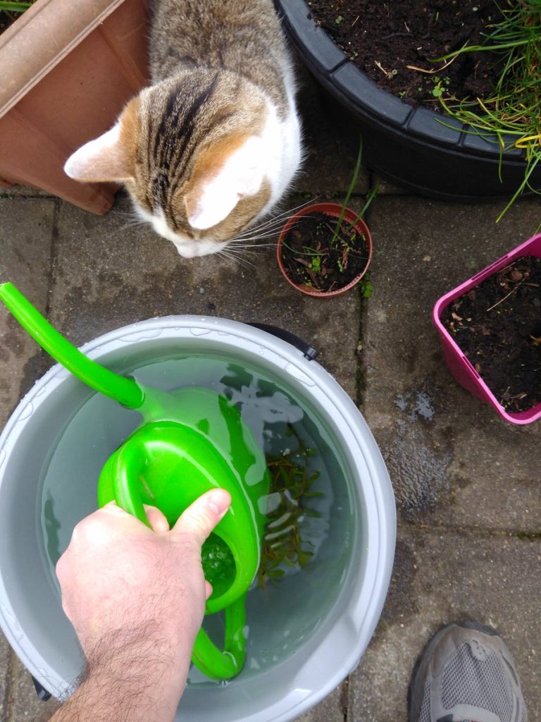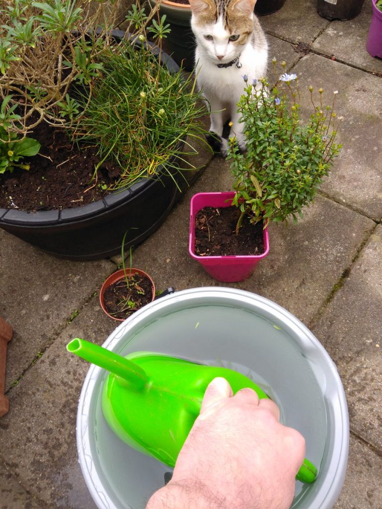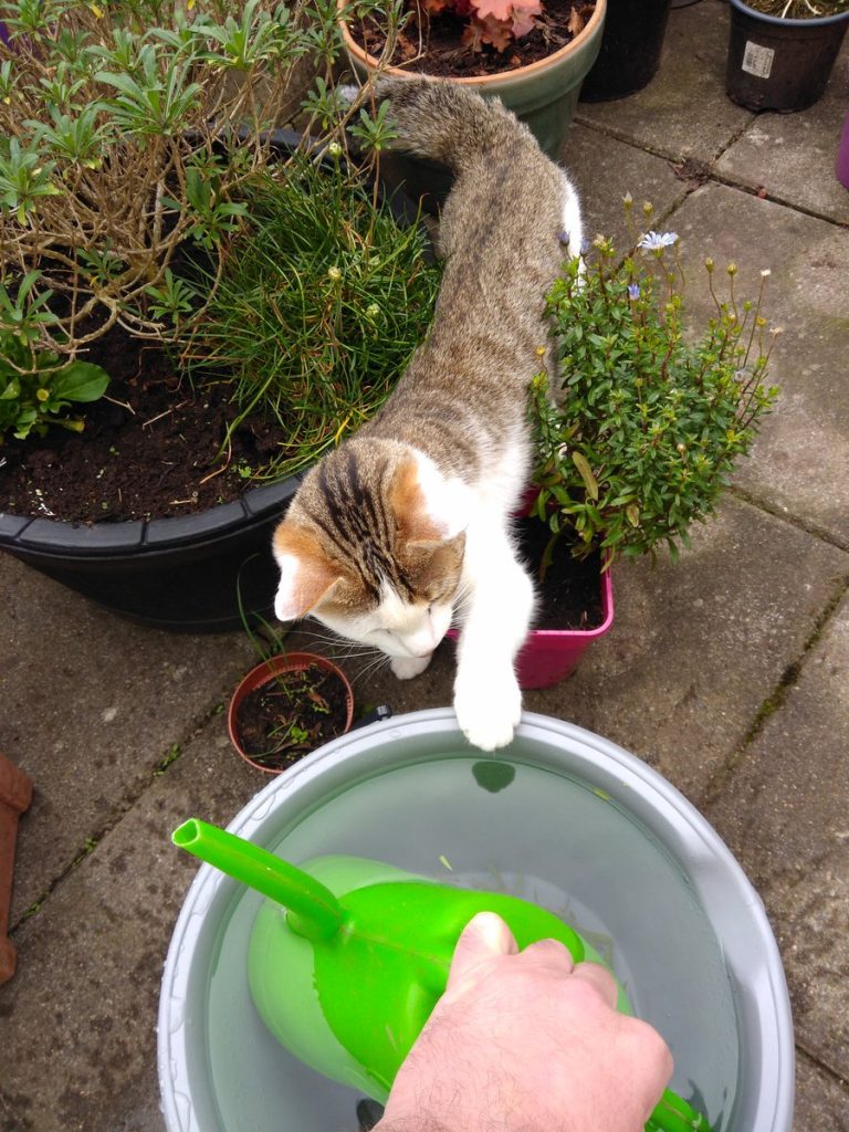 This is me trying to water my plants with my willow water (under the close supervision of Cricket the cat of course)