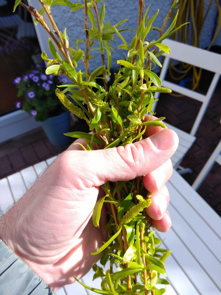 Więc… poszedłem do najbliższej wierzby, ściąłem kilka zielonych pędów wierzby, pociąłem je na małe kawałki, włożyłem do wiadra z wodą (pod ścisłym nadzorem kota Cricketa) i moczyłem je przez dzień, może dwa…