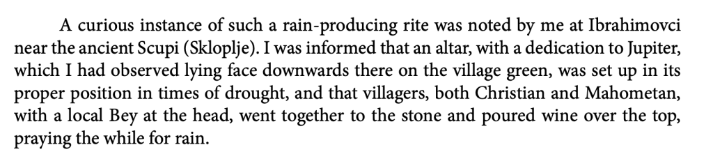 This is 1925 we are talking about. At least 1500 years since Jupiter was officially a god of rain…And yet, uneducated, illiterate SLAVIC villagers in Macedonia still remembered him in times of desperation…